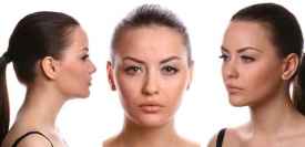 Step1:预留出脸颊两侧各3cm宽的发束,继而将剩余头发等分成左右两份;
