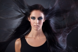 Step4:画一条黑色上眼线,眼尾加粗拉长,并将眼尾部分微微晕染,并用浅色珠光眼影在下眼睑涂抹,提亮。