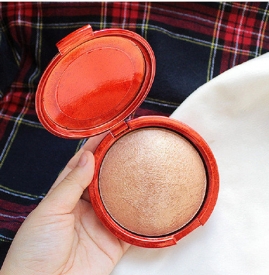 用眼影刷蘸取浅粉金色,在眼尾的小三角区域做晕染(如图所示)。