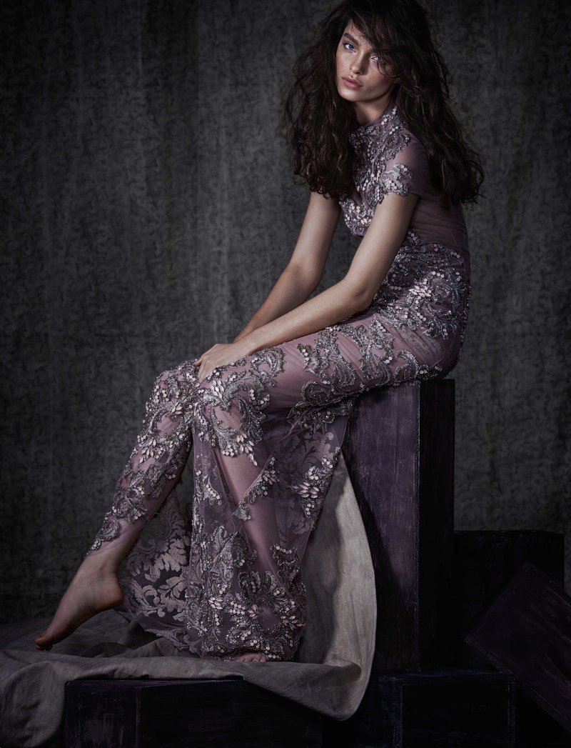 Patricia Bonaldi Winter 2025–Couture dress-maker Patricia Bonaldi’s winter 2025 lookbook features moody gowns with a romantic touch. The line is inspired by the colors and shapes of nature in icy shades of blue and white modeled by Luma