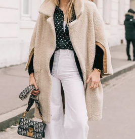 06 撞色拼接的毛呢外套有强劲的实力吸引眼球的注意,大翻领的运用足以将脸庞修饰小巧又娇俏,即便没有天生的巴掌脸,至少在穿上大翻领毛呢外套之后,视觉效果比之前要小一号。