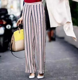 02 条纹的粗细和间隔直接影响到显瘦的程度,横条纹会显胖的定论在粗条纹宽间距的例证下荡然无存。细条纹T恤选择浅色的下装会中和膨胀感,至于短袖会冷?这不正好是风衣外套的良机!