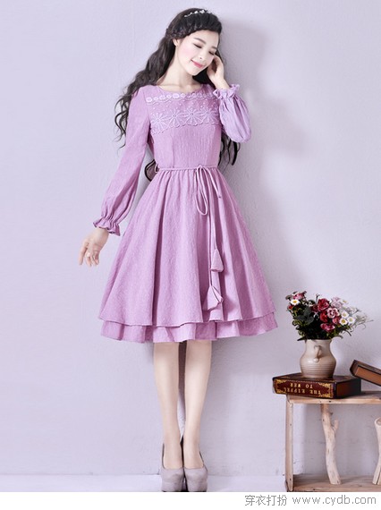 03 紫红色一直那么神秘,那么雅致,那么大气,赋予女性芭比般的千面娇娃形象。肩部花瓣锦簇,甜美的花仙子般,随着微风翩翩起舞。胸前的横向活裥,层次丰富而显丰满。及膝的长度,提升便捷度。