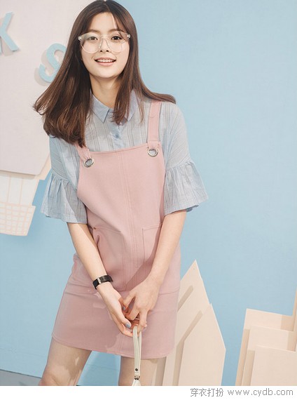 06 可爱的细条纹,精致的玫红色包边,胖妞其实也很细腻哦。下身搭配直筒型的牛仔短裙,蕾丝的装饰更加的梦幻。