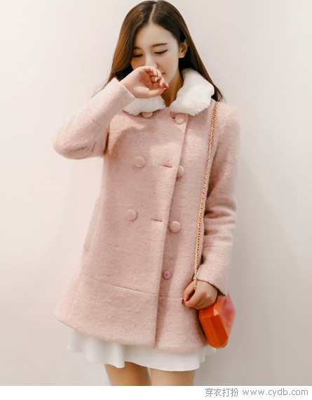 04 外套式的裙装柔美俏丽,将浓橘穿上身,有如茜茜公主与生俱来的那股不局限于条条框框的个性一般,火辣独特。披肩式的大毛领如流线般围成大大的V形,露出纤细皓颈,雕琢玲珑面庞,于包裹之中见魅惑。