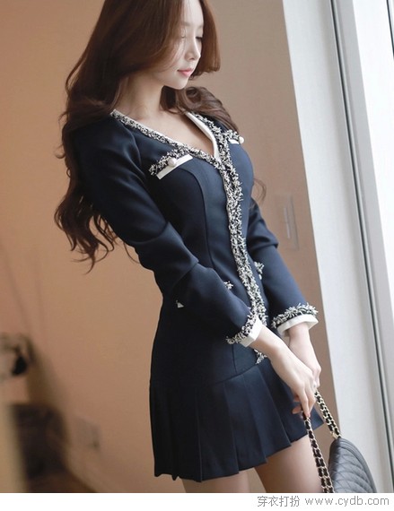02 同样是纯色铅笔裤,同样是紧身凸显腿型的裤型,要从同类中脱颖而出,没有一点与众不同的细节是办不到的。大腿前片褶皱设计有效收敛腿型,同时也能避免裤装常见的膝盖处起皱的缺点。