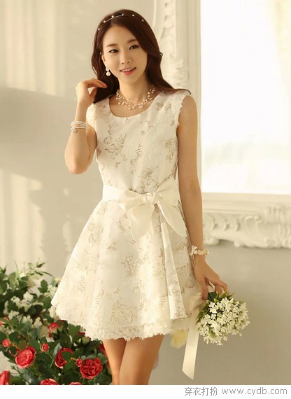 03 这特色的领子具有令人眼前一亮之魅力。三层交叠,每层的形状也各不相同,营造出唯美、大气的层次感,加上长长的系带和姜黄色面料使整个造型犹如高雅的公主装,让人大饱眼福。不设腰线的设计不再局限于瘦人穿,即使微胖型的MM也能穿出很美的效果来。
