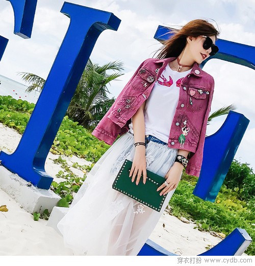 05 独特的水洗工艺让牛仔裤呈现精妙绝伦的做旧效果,那是复古风强劲的小文艺调调。点缀的亮黄色小仙人掌钉珠图案,俏皮搞怪得叫人忍俊不俊。与巴洛克风格的T恤搭配,完美的融合唱响着雅痞的旋律。