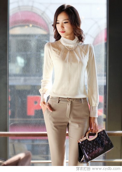06 当白色占据了主导,格纹就变得方正并且中规中矩,不知不觉中就展现了都市新女性儒雅的一面。还不到雪纺大肆上新的时节,办公室里偶尔的飘逸灵动不也是很动人的一幕吗?
