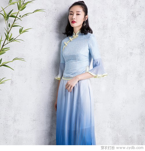 08 复古的旗袍盘扣将墨绿色的那股清雅气息烘托得更为浓郁,活泼个性都能被浸染上文静气息。并不抢眼的印花点缀裙摆,赋予纯色裙装难得的层次感与耐人寻味的细节。