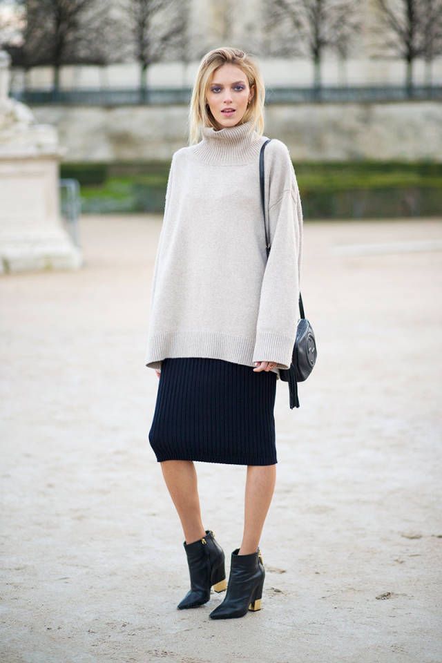 来自欧美潮人的一组街拍,高领毛衣和半裙的巧妙搭配,是否给你带来些时尚灵感呢。