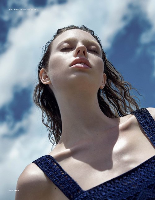 The mesmerizing Lone Farewell story captured exclusively for DESIGN SCENE by fashion photographer Ruo Bing Li with the gorgeous Tillie Medlan at Ciotti Models. In charge of the styling for the seaside story was Jennifer Zhao, while hair styling and makeup were handled by Tami El Sombati.
