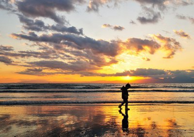 (三) 于适当的时间拍摄通常拍摄人像剪影,最方便漂亮的时间是日落前的 30 分钟,这时太阳已接近水平线,可以用来当背景,而且夕阳的光线大多很漂亮,比较容易拍出有感觉的相片。