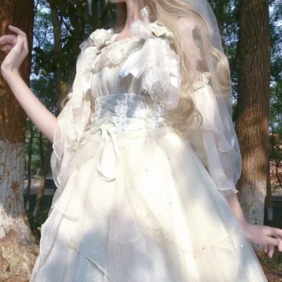沈妍/淡黄的长裙,蓬松的头发