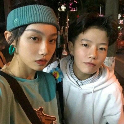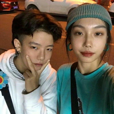 二兽 一对两张真人时尚魅力情侣头像